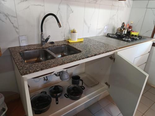 تتوفر (1) غرفة نوم في الشقة، وغرفة معيشة، ومطبخ مجهز بالكامل فيه ثلاجة، و (1) حمّام مع دش ولوازم استحمام مجاناً، وجهاز تكييف. تتوفر مناشف وبياضات أسرّة في الشقة.