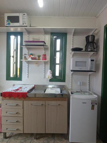 يتوفر في "Kitnet da Elô" منطقة جلوس وتلفزيون بشاشة مسطحة مع قنوات فضائية ومطبخ صغير ومنطقة لتناول الطعام، بالإضافة إلى حمّام خاص مع مجفف للشعر وبيديت ودش. تحتوي كل غرفة في "Kitnet da Elô" على بياضات أسرّة ومناشف.