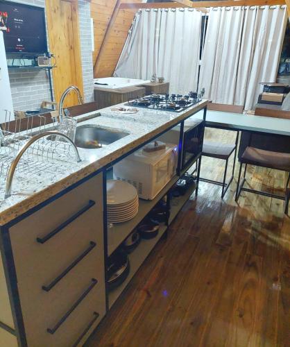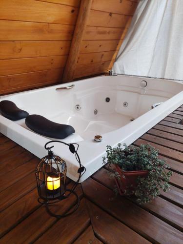 يقدّم مكان إقامة "Chalé super aconchegante a beira do lago." حوض استحمام ساخن.