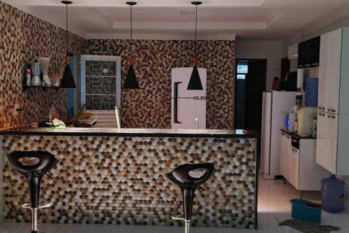 تتوفر (3) غرفة نوم في بيت العطلات هذا، وتلفزيون بشاشة مسطحة، ومطبخ فيه ثلاجة، وجهاز تكييف.