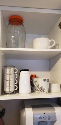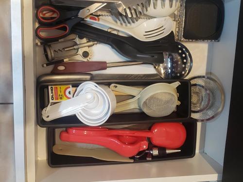 تتوفر (1) غرفة نوم في الشقة، وغرفة معيشة، ومطبخ مجهز بالكامل فيه ثلاجة وماكينة قهوة، و (2) حمّام مع دش، وجهاز تكييف. تتوفر مناشف وبياضات أسرّة في الشقة.