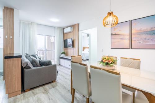 Apartamento 150m da PRAIA com SACADA, WI-FI AR CONDICIONADO, PISCINA, PORTARIA 24h, PLAYGROUND e vaga de GARAGEM