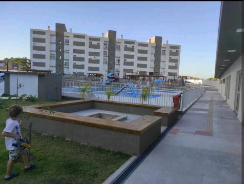 Situated in Pelotas, Apto novo em condomínio com ótima área de lazer e garagem features accommodation with private pool, free WiFi and free private parking for guests who drive. Boasting a kids' club, this property also provides guests with a picnic area. The accommodation provides a lift and full-day security for guests.