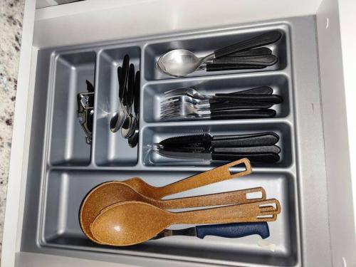 تتوفر (1) غرفة نوم في هذه الشقة، وغرفة معيشة، ومطبخ مجهز بالكامل فيه ثلاجة وغلاية، و (1) حمّام مع دش ولوازم استحمام مجاناً، وجهاز تكييف. تتوفر مناشف وبياضات أسرّة في الشقة.