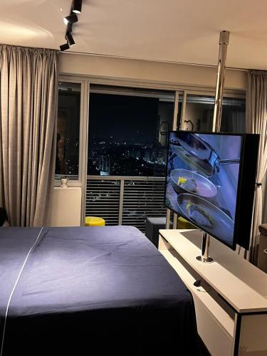 تتوفر (1) غرفة نوم في هذه الشقة، وغرفة معيشة، ومطبخ مجهز بالكامل فيه ثلاجة وماكينة قهوة، و (1) حمّام مع دش ومجفف للشعر، وجهاز تكييف. تتوفر مناشف وبياضات أسرّة في الشقة.