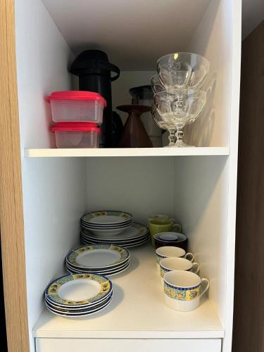 تتوفر (1) غرفة نوم في الشقة، ومطبخ صغير فيه ثلاجة وفرن، و (1) حمّام مع دش ومجفف للشعر وغسالة ملابس. تتوفر مناشف وبياضات أسرّة في الشقة.
