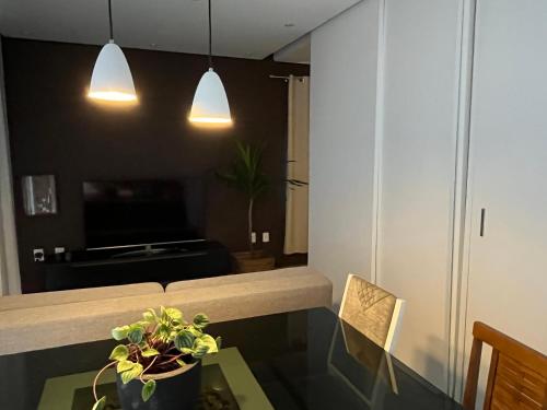 تتوفر (1) غرفة نوم في بيت العطلات هذا، وتلفزيون بشاشة مسطحة، ومنطقة لتناول الطعام، ومطبخ فيه ثلاجة، وغرفة معيشة، وجهاز تكييف.