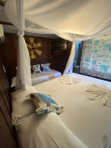 تتميز الغرف في Pousada Hanalei بخشب داكن اللون وأسرّة بيضاء مزخرفة بأربعة قوائم مع ناموسيات. وتحتوي جميعها على تكييف وتلفزيون مع قنوات فضائية، وتضم معظمها شرفات خاصة مع أراجيح وإطلالات خلابة.