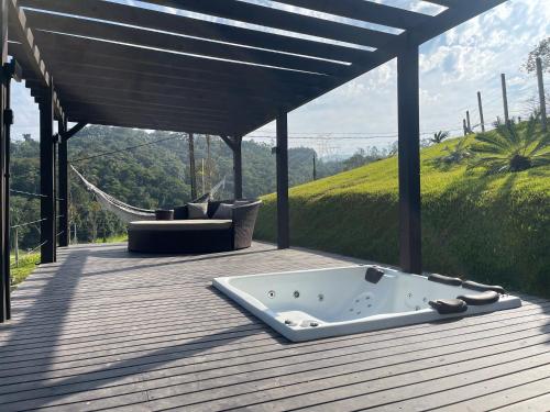 في مكان إقامة "Chalé rural- hospedagem e experiência!"، يمكن للضيوف استخدام حوض الاستحمام الساخن. يمكن للضيوف في مكان إقامة "Chalé rural- hospedagem e experiência!" استخدام ملعب الأطفال ومرافق الشواء.