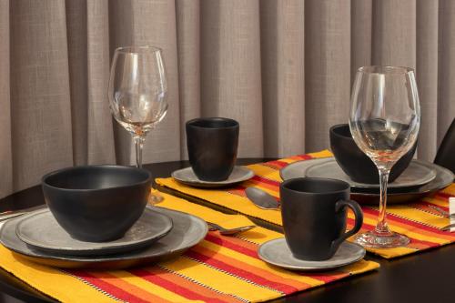• يتم تعقيم جميع الأطباق وأدوات تناول الطعام والأكواب وأدوات المائدة الأخرى