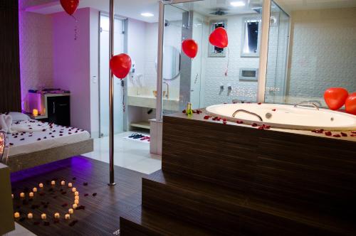 يوفر مكان إقامة "MIRAGEM MOTEL" الواقع في ريو فيرد إقامة للأشخاص البالغين فقط مع بار وسبا ومركز عافية. يوفر مكان الإقامة مطعماً وحديقة، بالإضافة إلى ساونا وحوض استحمام ساخن. يوفر الفندق أيضاً واي فاي مجاني ومواقف خاصة للسيارات مجاناً.