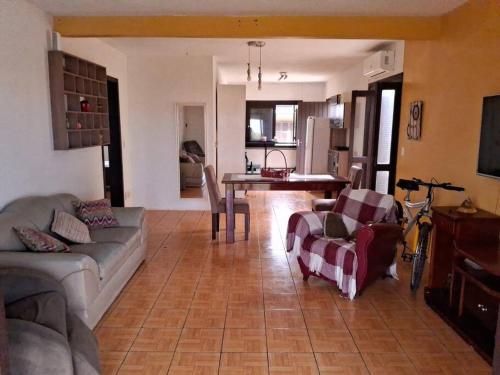 تتوفر (3) غرفة نوم في بيت العطلات، وغرفة معيشة، وتلفزيون بشاشة مسطحة، ومطبخ مجهز فيه ثلاجة وفرن، و (1) حمّام مع دش، بالإضافة إلى شرفة وإطلالات على البحر.