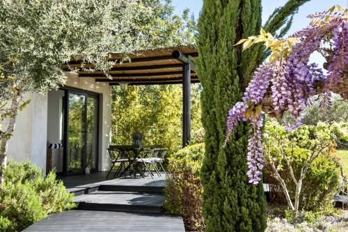 يتم تقديم إفطار على التراس الخشبي في أجواء طبيعية ومريحة خلال الشهور الدافئة.