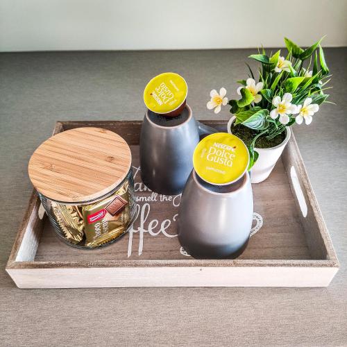 تتوفر (1) غرفة نوم في هذه الشقة، وغرفة معيشة، ومطبخ مجهز بالكامل فيه غسالة صحون وماكينة قهوة، و (1) حمّام مع دش ولوازم استحمام مجاناً، وجهاز تكييف. تتوفر مناشف وبياضات أسرّة في الشقة.