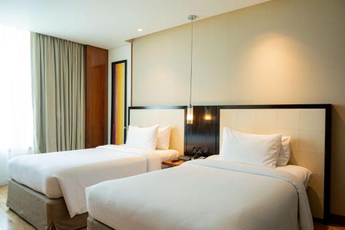 تحتوي جميع الغرف المكيفة الهواء في دوبل تري على منطقة جلوس وغلاية كهربائية وتلفزيون بشاشة مسطحة مع قنوات فضائية، فيما يشتمل الحمام الخاص على مجفف شعر ولوازم استحمام مجانية ودش.