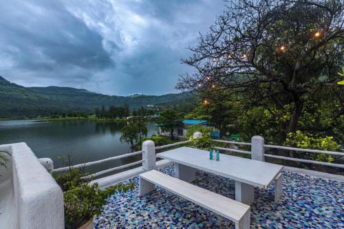يوفر مكان إقامة "SaffronStays Kairos Athena, Karjat - Greek style pool villa near Camp Max" تراس.