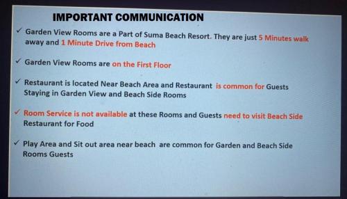 يقع مكان إقامة "Suma beach resort" في دابولي، ويتميز بحديقة ومنطقة شاطئ خاص ومطعم وواي فاي مجاني. يوفر الفندق غرفاً عائلية.