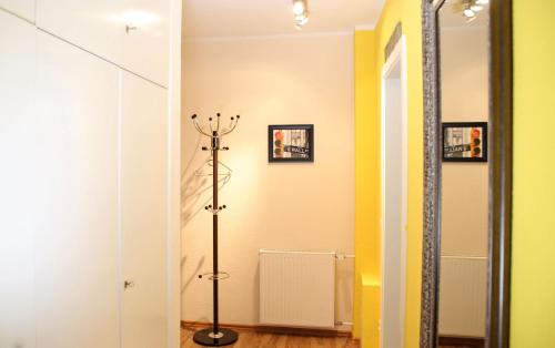 تتوفر (1) غرفة نوم في الشقة، وغرفة معيشة، وتلفزيون بشاشة مسطحة، ومطبخ صغير مجهز فيه ثلاجة وميكروويف، و (1) حمّام مع دش، بالإضافة إلى شرفة وإطلالات على المدينة. تتوفر مناشف وبياضات أسرّة في الشقة.