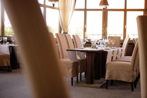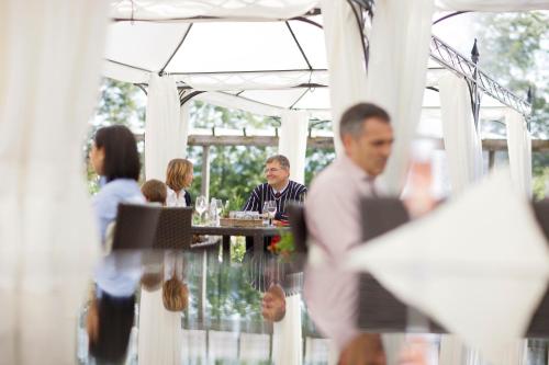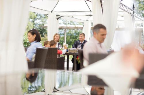 يُقدم مطعم Weitblick مأكولات إقليمية خاصة ومأكولات رائعة، ويُمكن للضيوف الاسترخاء في حديقة البيرة التي تحتوي على بركة جميلة، ويفتح بار Au BAR Gine والصالة التي تشتمل على مدفأة أبوابهما كل مساء.