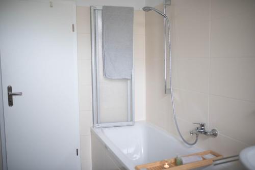 تتوفر (1) غرفة نوم في الشقة، ومطبخ فيه ثلاجة وغسالة صحون، و (1) حمّام مع حوض استحمام ولوازم استحمام مجاناً. تتوفر مناشف وبياضات أسرّة في الشقة.
