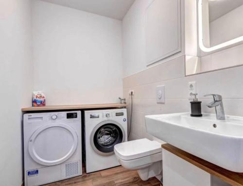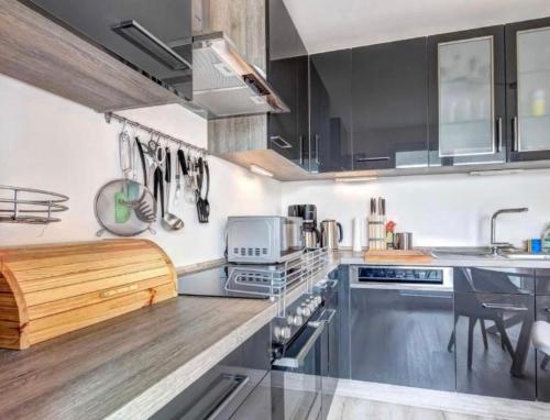 تتوفر (2) غرفة نوم في الشقة، وغرفة معيشة، وتلفزيون بشاشة مسطحة، ومطبخ مجهز فيه ثلاجة وغسالة صحون، و (2) حمّام مع دش، بالإضافة إلى شرفة وإطلالات على البحر. تتوفر مناشف وبياضات أسرّة في الشقة.