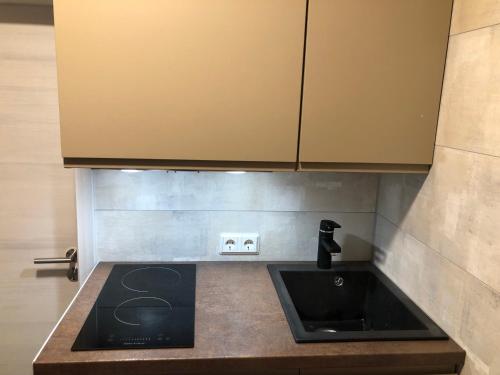 يتوفر أيضاً ما يلي: ثلاجة وموقد مسطح، بالإضافة إلى ماكينة قهوة وغلاية.
