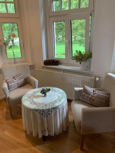 يبعد مكان إقامة "100 qm Ferienwohnung Am Heiligen Brunnen" مسافة 1 كم عن مدينة كويدلينبورغ القديمة و17 كم عن هيكسنتانزبلاتز، تالي. يقع مطار لايبزيغ/هاله على بُعد 107 كم من مكان الإقامة.