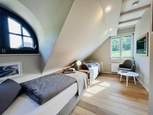 تتوفر (2) غرفة نوم في بيت العطلات، و (2) حمّام، وبياضات أسرّة، ومناشف، وتلفزيون مع قنوات فضائية، ومطبخ مجهز بالكامل، وتراس مع إطلالات على الحديقة.