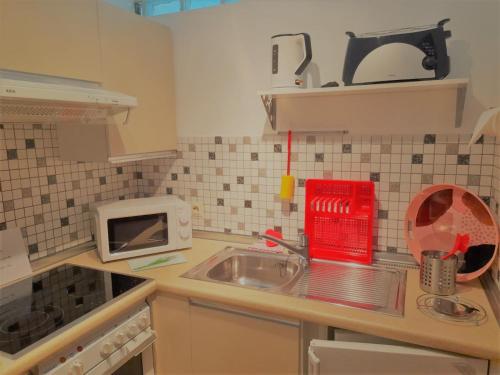 تتوفر (1) غرفة نوم في هذه الشقة، وغرفة معيشة، ومطبخ مجهز بالكامل فيه ثلاجة وماكينة قهوة، و (1) حمّام مع دش ومجفف للشعر. تتوفر مناشف وبياضات أسرّة في الشقة.