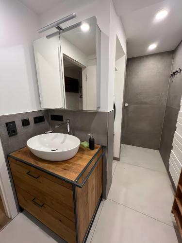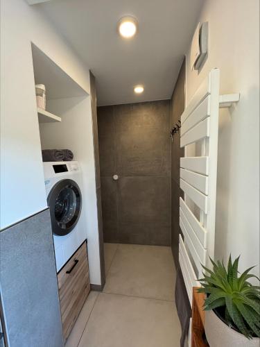 توفر هذه الشقة (1) غرفة نوم، بالإضافة إلى غرفة معيشة فيها تلفزيون مع قنوات فضائية، ومطبخ مجهز بالكامل فيه ثلاجة وغسالة صحون، و (1) حمّام مع لوازم استحمام مجاناً. تتوفر مناشف وبياضات أسرّة في الشقة.