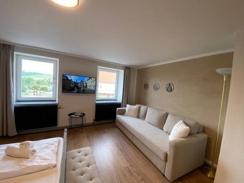 تحتوي كل غرفة في "Lehmgefühle mit Mainblick DZ 5 by Claycation" على خزانة ملابس وتلفزيون بشاشة مسطحة، بالإضافة إلى حمّام خاص وبياضات أسرّة ومناشف.
