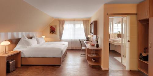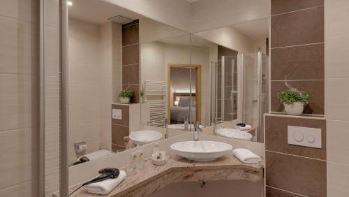 The Romantik-Hof offers comfortably furnished rooms in a classic and modern style, featuring a flat-screen TV with seating area, a coffee/espresso machine and minibar. All private, modern bathrooms come with a bathrobe, hairdryer and large mirror.
