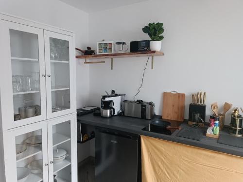 تتوفر (1) غرفة نوم في هذه الشقة، وغرفة معيشة، ومطبخ مجهز بالكامل فيه ثلاجة وماكينة قهوة، و (1) حمّام مع دش ومجفف للشعر. تتوفر مناشف وبياضات أسرّة في الشقة.