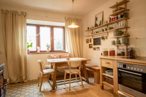 يحتوي المطبخ على ثلاجة وفرن وموقد مسطح، ويوجد دش مع مجفف للشعر ونعال.