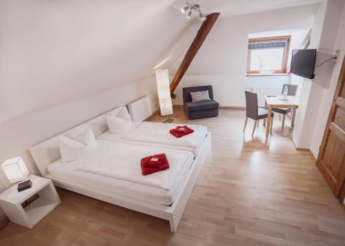 Decorated in warm colours, rooms at Hotel Am Rittergut feature contemporary furnishings throughout. Each is complete with a seating area, flat-screen TV and en suite facilities.