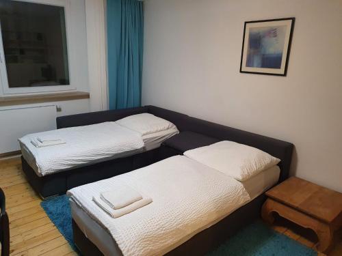 تتوفر (2) غرفة نوم في الشقة، ومطبخ فيه ثلاجة وميكروويف، و (1) حمّام مع دش ولوازم استحمام مجاناً وغسالة ملابس. تتوفر مناشف وبياضات أسرّة في الشقة.