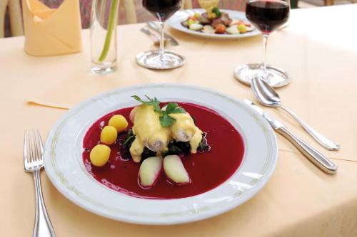 The restaurant serves regional and international specialities, which can be enjoyed in the spacious conservatory, or on the sunny terace.