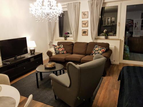 تتوفر (1) غرفة نوم في الشقة، وغرفة معيشة، وتلفزيون بشاشة مسطحة، ومطبخ صغير مجهز فيه ثلاجة وغسالة صحون، و (1) حمّام مع دش، بالإضافة إلى تراس وإطلالات على المدينة. تتوفر مناشف وبياضات أسرّة في الشقة.