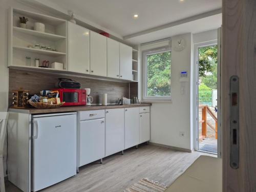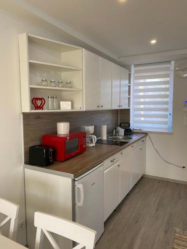 تتوفر (2) غرفة نوم في بيت العطلات، وغرفة معيشة، ومطبخ مجهز بالكامل فيه ثلاجة وماكينة قهوة، و (1) حمّام مع بيديت ودش، وجهاز تكييف. يتوفر تلفزيون بشاشة مسطحة.