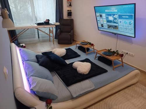يوفر مكان إقامة "Éva Apartmanház" للضيوف غرفاً مكيفة تحتوي على مكتب وماكينة قهوة وثلاجة وغسالة صحون، بالإضافة إلى صندوق ودائع آمن وتلفزيون بشاشة مسطحة وفناء، وحمّام خاص مع دش. تحتوي جميع الغرف على غلاية، بينما توفر بعض الغرف مطبخاً صغيراً مع فرن وميني بار. تحتوي كل غرفة في "Éva Apartmanház" على بياضات أسرّة ومناشف.