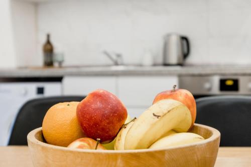 تتوفر (3) غرفة نوم في هذه الشقة، وغرفة معيشة، ومطبخ مجهز بالكامل فيه ثلاجة وغلاية، و (2) حمّام مع دش ولوازم استحمام مجاناً، وجهاز تكييف. تتوفر مناشف وبياضات أسرّة في الشقة.