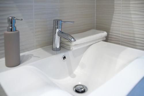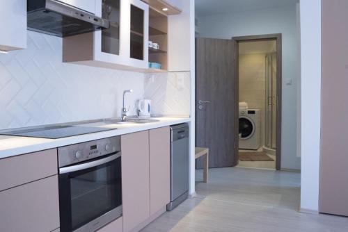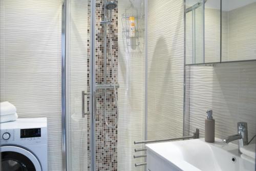 تتوفر (1) غرفة نوم في هذه الشقة، وغرفة معيشة، ومطبخ مجهز بالكامل فيه ثلاجة وماكينة قهوة، و (1) حمّام مع دش ومجفف للشعر، وجهاز تكييف. تتوفر مناشف وبياضات أسرّة في الشقة.
