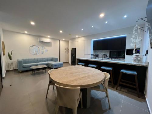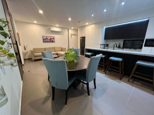 تتوفر (2) غرفة نوم في هذه الشقة، وغرفة معيشة، ومطبخ مجهز بالكامل فيه ثلاجة وماكينة قهوة، و (2) حمّام مع دش ولوازم استحمام مجاناً، وجهاز تكييف. تتوفر مناشف وبياضات أسرّة في الشقة.
