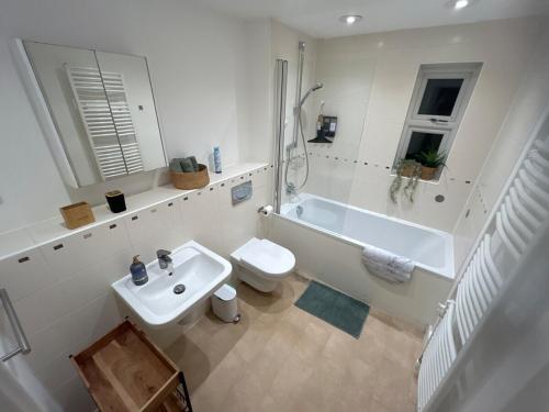 يحتوي مكان إقامة "Charming ground floor flat with parking - Maidenhead" على (2) غرفة نوم، ومطبخ فيه ثلاجة وغسالة صحون، وغسالة ملابس، و (1) حمّام مع لوازم استحمام مجاناً ومجفف للشعر. يتوفر تلفزيون بشاشة مسطحة.