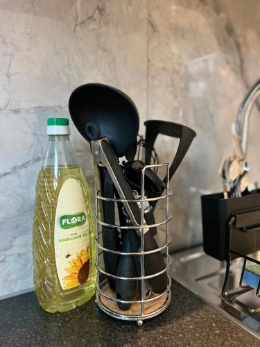 يتوفر تلفزيون بشاشة مسطحة في الشقة يحتوي المطبخ على ثلاجة وفرن وميكروويف، ويوجد دش مع لوازم استحمام مجاناً ومجفف للشعر.