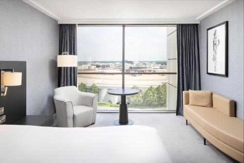 This 4-star sustainability award winner hotel is linked to Gatwick Airport's North Terminal by a short, covered walkway and easy connections via monorail to the South Terminal. It features 3 restaurants, 2 bars, and spacious soundproof en suite rooms with satellite TV.