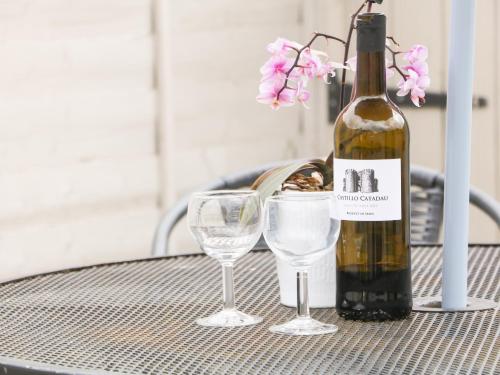 تتوفر (2) غرفة نوم في بيت العطلات، وتلفزيون، ومطبخ مجهز فيه ثلاجة وغسالة صحون، وغسالة ملابس، و (1) حمّام مع دش.