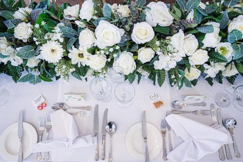 • يتم تعقيم جميع الأطباق وأدوات تناول الطعام والأكواب وأدوات المائدة الأخرى