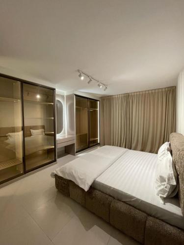 تتوفر (1) غرفة نوم منفصلة في الشقة، وغرفة معيشة، ومطبخ مجهز بالكامل، و (2) حمّام، وجهاز تكييف. يتوفر تلفزيون بشاشة مسطحة.