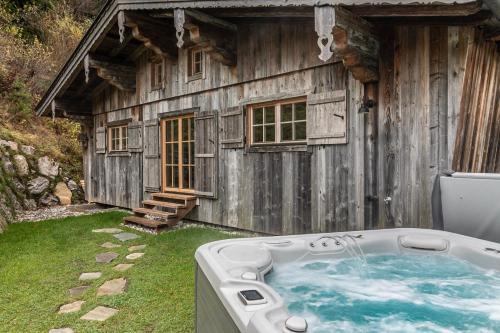تضم منطقة العافية في مكان إقامة "Luxury old wood mountain chalet in a sunny secluded location with gym, sauna & whirlpool" ساونا وحوض استحمام ساخن.